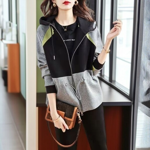 今年人気のレディースジャケット春秋新色マッチング怠惰なフード付きジッパー韓国風ウエスト緩いスウェットシャツ